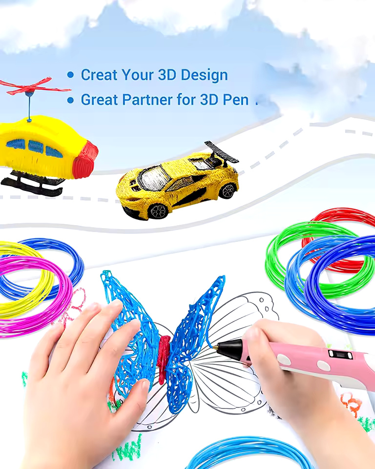 Colored PLA Filament Refill for 3D Printing Pen – Safe, Smoke-Free & Flexible | 36M 50M 100M 150M 200M for Kids & Creative Projects